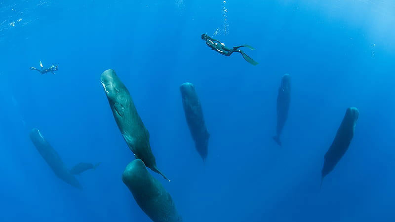 Vor sehr vielen Jahren habe ich ein Foto von einem Abnoe-Taucher gesehen, der zwischen senkrecht schlafenden Potwalen in beeindruckender Tiefe getaucht ist. Beim Durchstöbern seiner sensationellen Unterwasser-Aufnahmen bin ich irgendwann bei den Fotos hängengeblieben, auf denen er mit einer Buckelwal-Mama und ihrem neugeborenen Kalb taucht. Ganz ruhig und mit respektvollem Abstand. Das Jungtier ist nach einiger Zeit wohl immer neugieriger geworden, wie Kinder eben so sind, und er hat Fotos von diesen Augenblicken geschossen, die mich wirklich berührt haben.