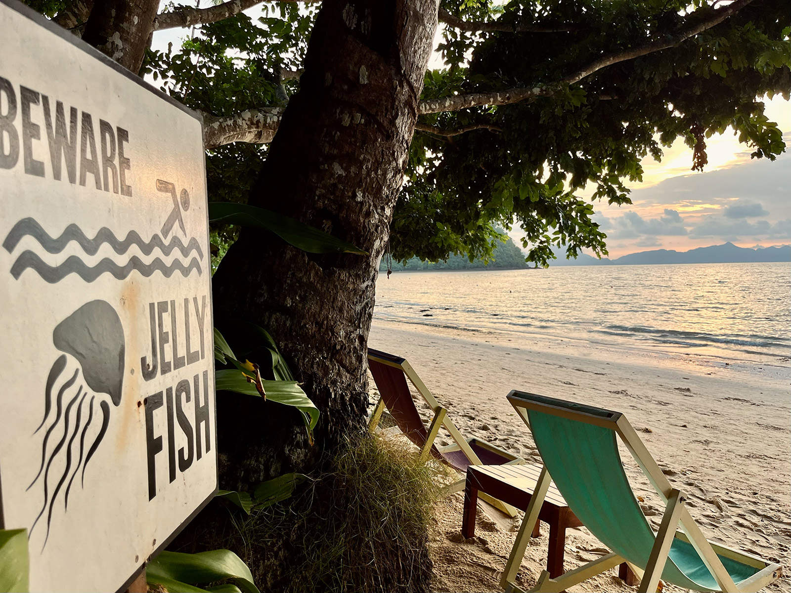 Und so verging der Nachmittag. Und fast hätte es geklappt, dass wir uns alle mit nichts tun beschäftigt hätten. Dann habe ich aber gegen 17:00 Uhr doch noch einen Scooter geholt und wir sind zum Vanilla Beach gefahren. Was ein Reinfall – sage ich. Fancy Bars und luxuriöse Insta-worthy Boutique-Hotels aneinander gereiht vor einer tollen Kulisse. Aber das Wasser an diesem Strandabschnitt war das dreckigste, das wir bislang mit weitem Abstand gesehen haben! Bisher war es sogar überall super sauber! Auch an Land, was uns ein bißchen überrascht hatte.