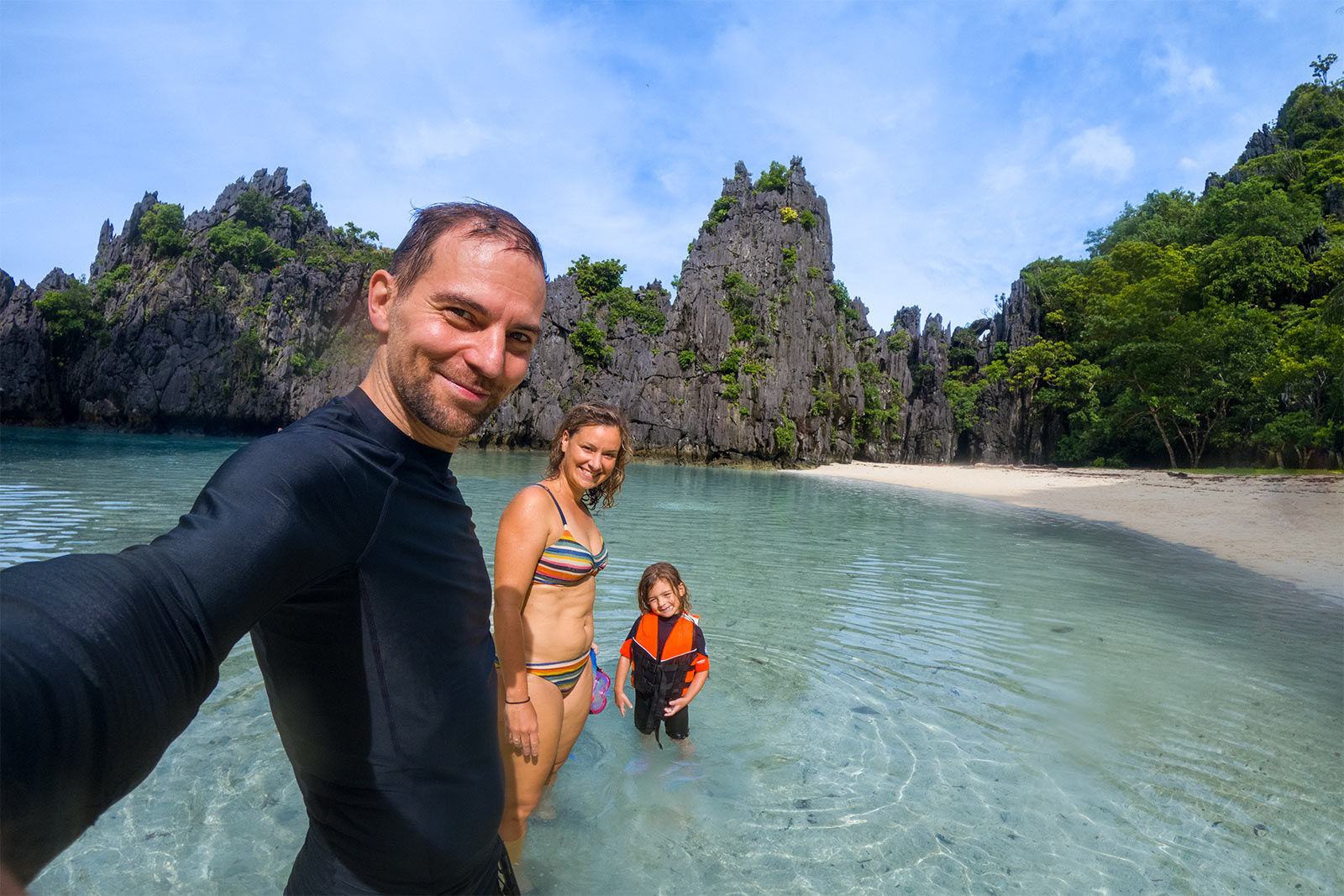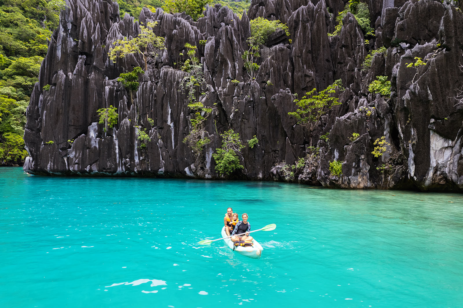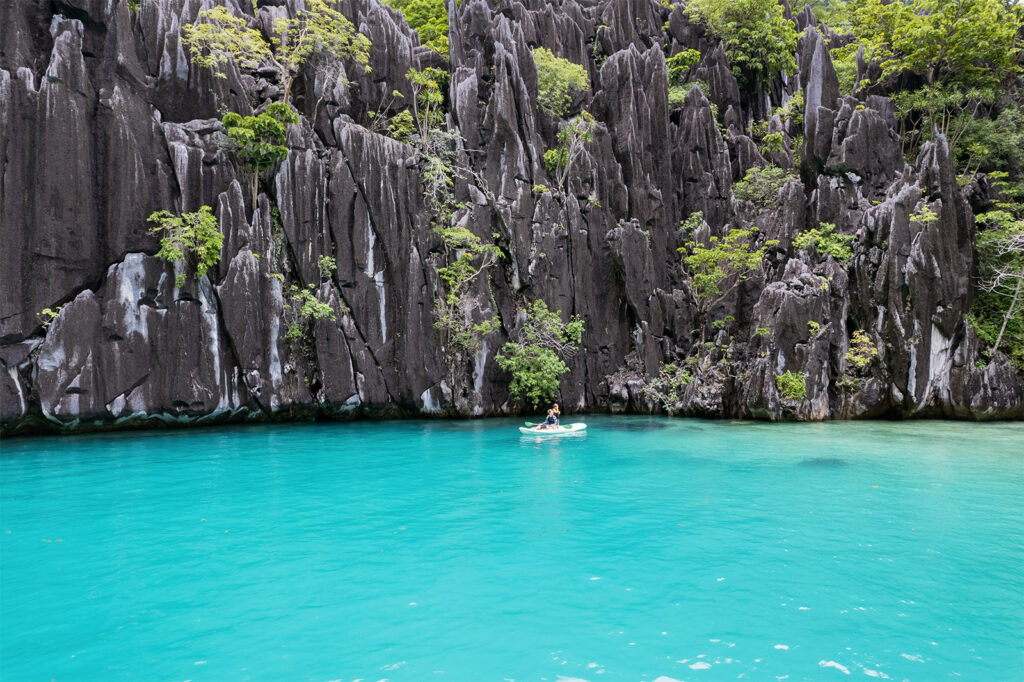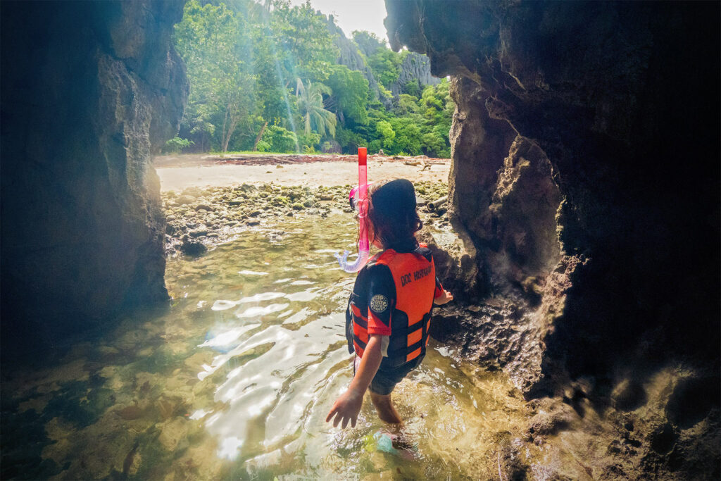 Noch besser fand ich persönlich den Secret Beach. Ähnlich wie in der Big Lagoon, paddelt man mit dem Kayak in seichtem türkisfarbenden Wasser durch die Schluchten und kommt in einer innenliegenden Lagune an, die noch einen kleinen Strand zu bieten hat. Weil das Wetter weiterhin gut war, habe ich natürlich noch schnell die Drohne fliegen lassen und konnte ein paar tolle Schnappschüsse machen. Auf dem Rückweg haben meine Mädels sogar noch eine Meeresschildkröte entdeckt! Alles in allem ein wirklich überraschend gelungener Tagesausflug, der auch bei Maila Begeisterung ausgelöst hat.
