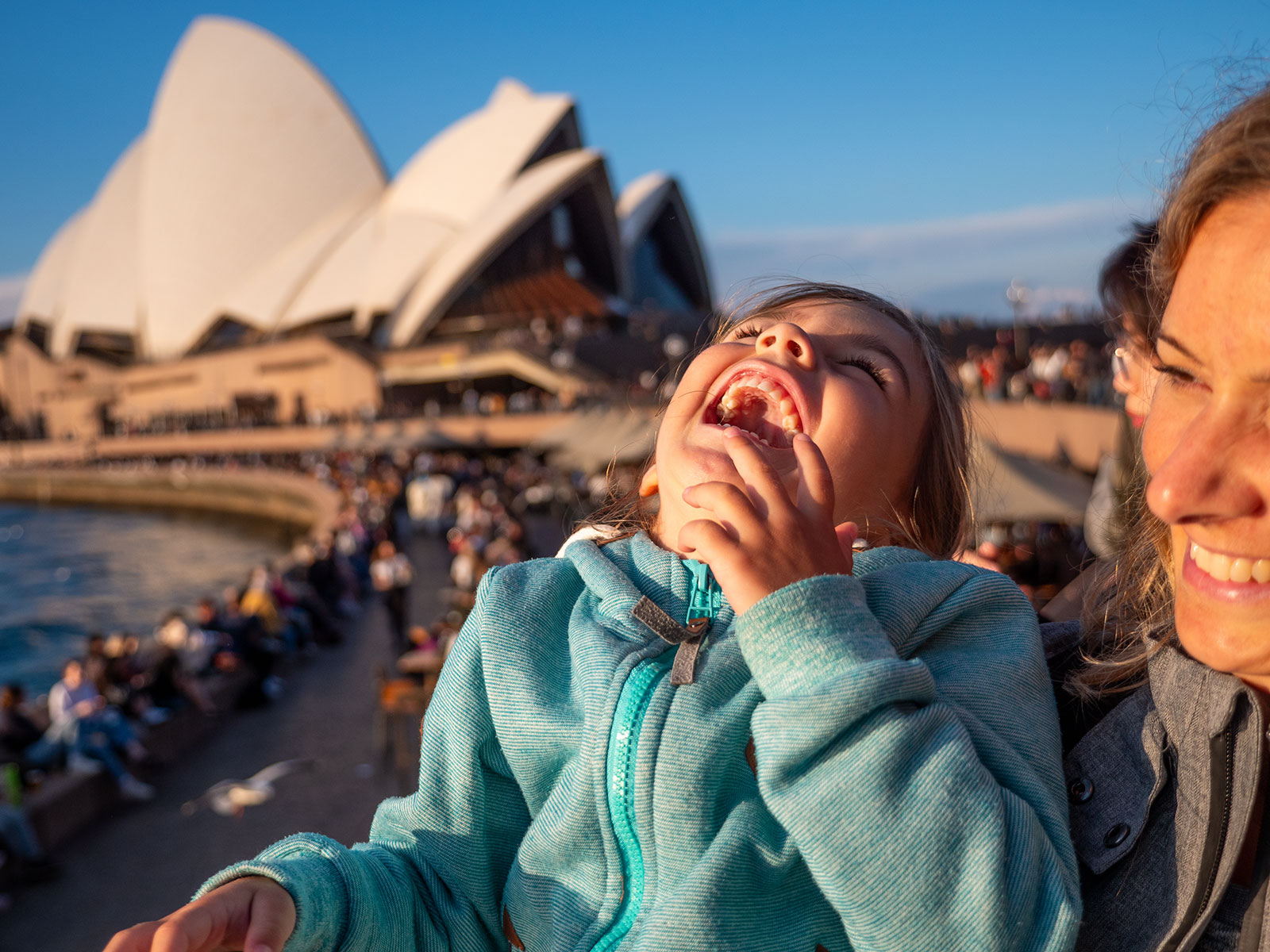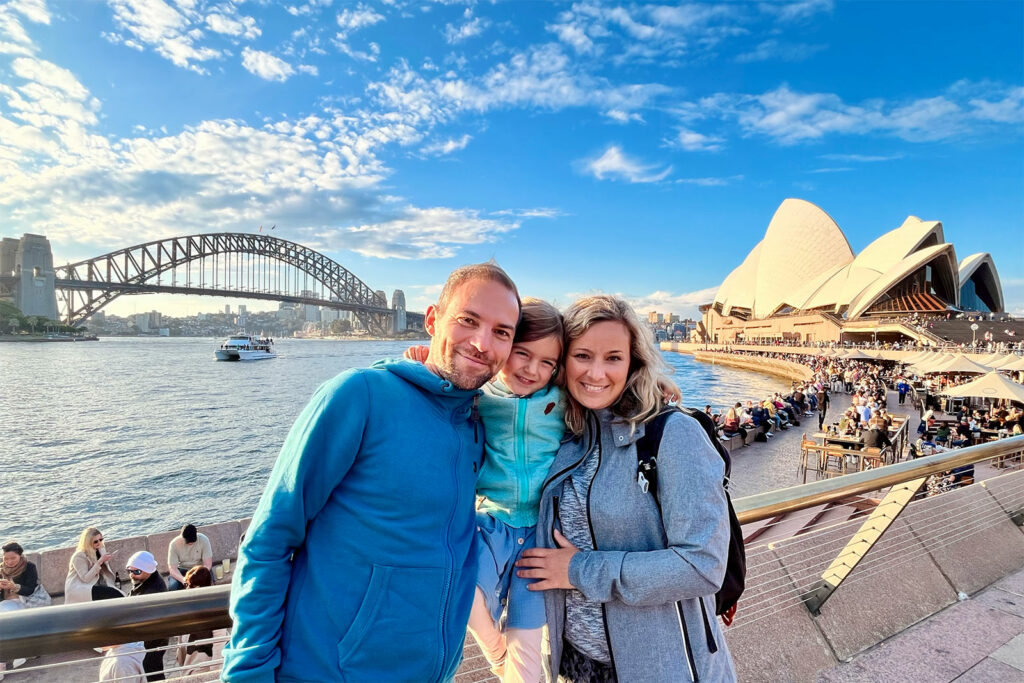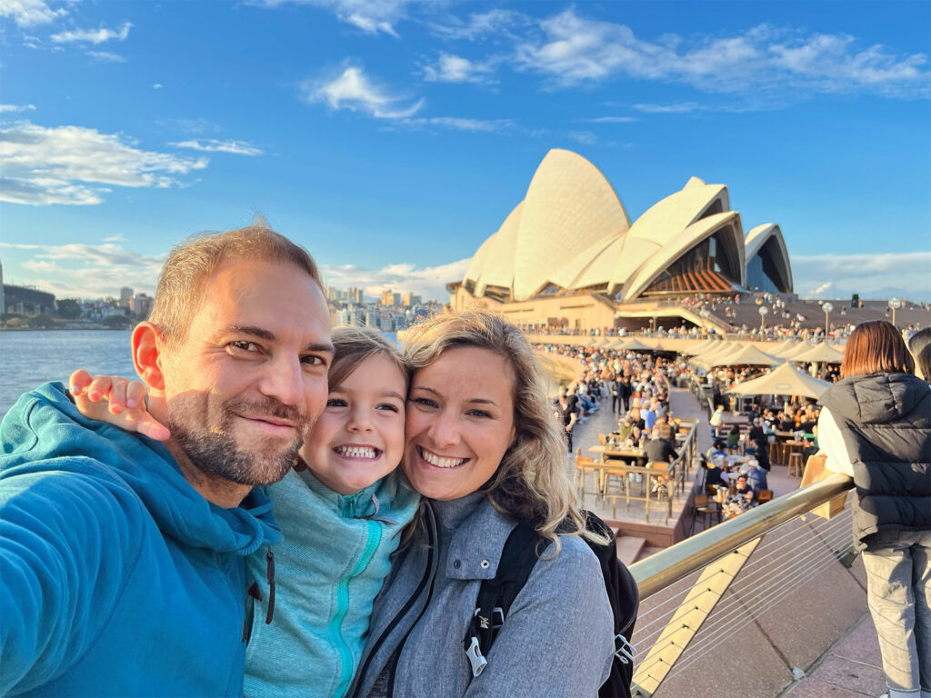 Da wir alle etwas hangry waren, mussten wir aber erstmal alle Mägen wieder füllen. Maila wollte italienisch essen, nach dem es gestern ja schwedisch gab. Also sind wir heute zu einem richtigen Italiener. Nachdem wirklich alle ihren Teller leer futtert hatten, sind wir schnellstens zum Hafen, wo die weltbekannte Oper ist. Sydney hat uns nämlich mit richtig schönem Winter-Wetter begrüßt. Es ist zwar recht frisch, aber in der Sonne ist es angenehm warm und so hat sich der Hafen und die Oper von ihrer schönsten Seite gezeigt! Eine halbe Stunde vor Sonnenuntergang sind wir vor der Oper angekommen und hatten einen wunderschönen Ausblick über den gesamten Hafen. Es war recht viel los, was aber vermutlich auch daran lag, dass Sonntag ist und wir die vergangenen 4 Tage auf einer kleinen Insel die meiste Zeit alleine waren…