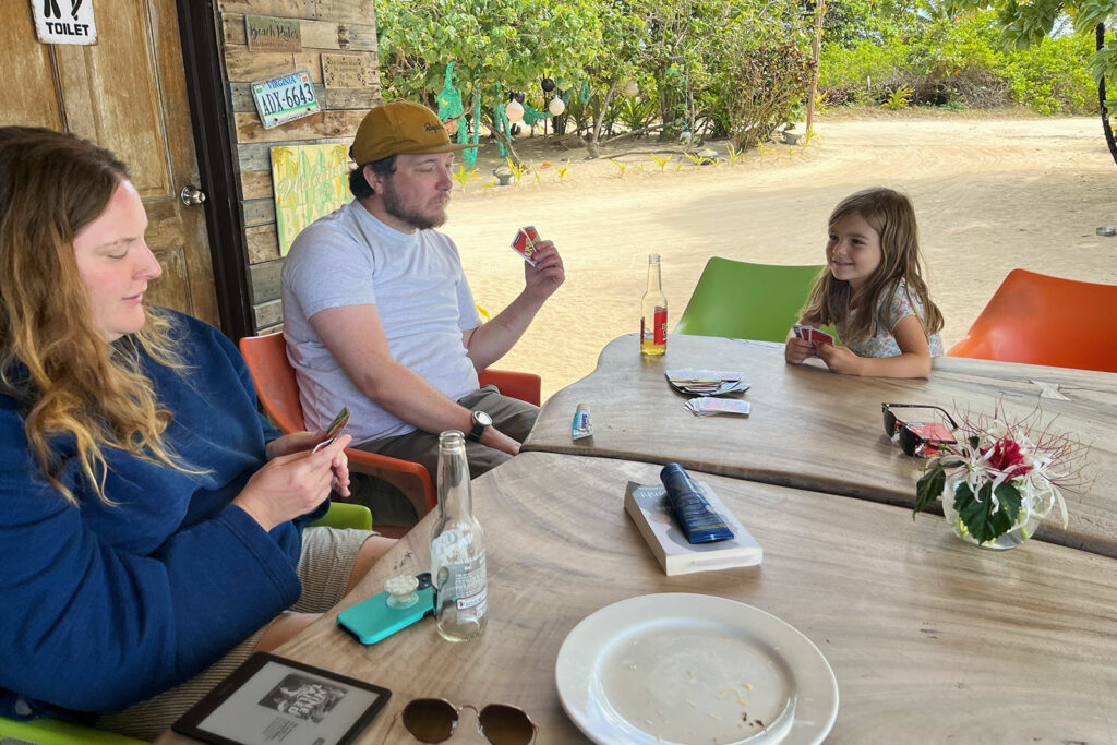 Meine Aufgabe des Tages war es dabei, ihn zweimal zu starten und zu landen und zwischendrin einigermaßen ansehnliche Fotos und Videos zu machen. Maila hat währenddessen mit Grace, einer vierjährigen Besucherin des Cafés gespielt und jede Menge Marshmellows und Chips gegessen. Als sie leider gehen musste, hatte sie zwei Neuseeländer, ein Pärchen, zum UNO-Spiel überredet und war schon in der fünften Runde als ich zurück kam, vom Fotos machen.