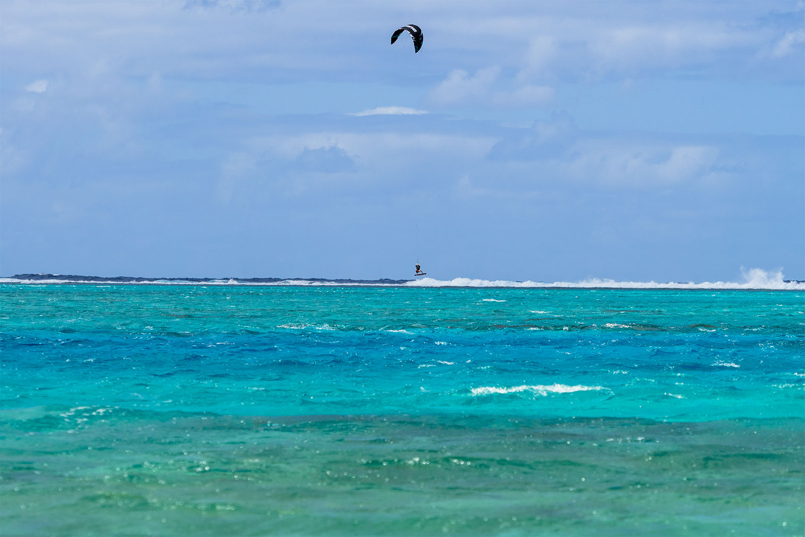 Heute Morgen, nach einem späten Frühstück, konnte Marc tatsächlich seinen Traum 2.0 auch noch erfüllen und ist direkt in der Lagune vor unsere Unterkunft gekited.