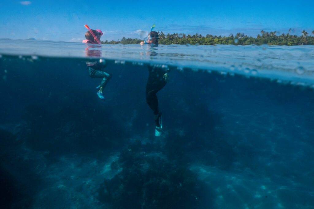 Am Nachmittag haben wir uns eines der Kajaks gemietet und sind in unserer Lagune raus aufs Riff gepaddelt. Zwei Tage zuvor gab es wohl eine Hai-Sichtung. Wir konnten den Black Tip aber leider nicht mehr finden.
