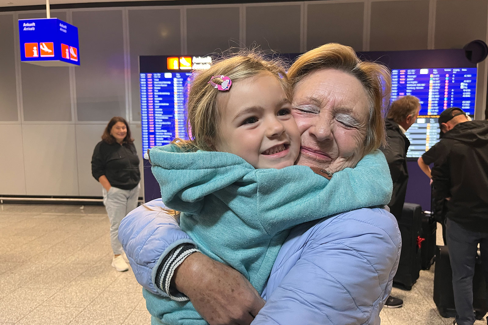 Am Flughafen in Frankfurt haben uns meine Eltern abgeholt und Maila hat sich die ganze Zeit schon auf beide Omis und den Opa gefreut. Sie hat den Opa Pit sofort entdeckt und ist ihm direkt in die Arme gesprungen. Danach war dann die Omi Doris mit einer festen Umarmung dran. Man hat ihr die Freude richtig angemerkt. Omanette wird das kommende Woche beim Wiedersehen sicher auch noch zu spüren bekommen.