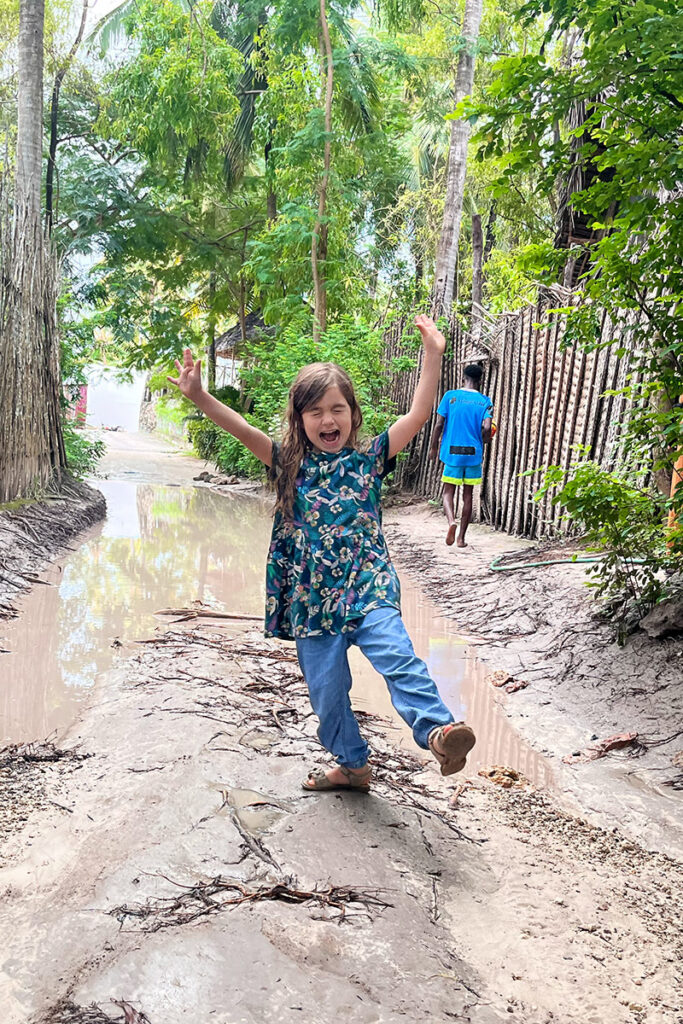 Hier schüttet es wie aus Kübeln und unseren Erkundungs-Spaziergang ins lokale Dörfchen Paje mussten wir bereits nach 200m abbrechen, weil wirklich nichts passierbar war. Alles stand mehr als 20cm unter Wasser. Selbst die kleinen Minibusse und Motorräder versinken beim passieren bis an die Oberkante der Räder in den Teichen. Man merkt, wir befinden uns in der Übergangszeit zur Dry-Season. Also noch nicht so ganz dry.