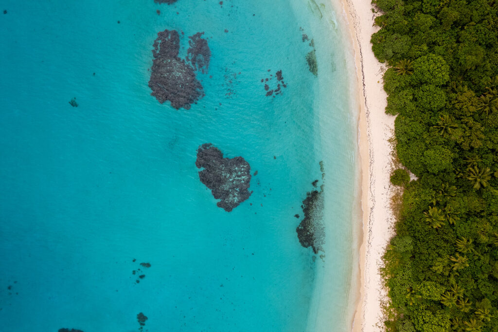 Für mich geht es heute solo aufs Boot. Maila und Miri verabschieden mich noch am Strand, bevor es losgeht. Mit an Bord eine Gruppen junger Australier, die Kamera-Equipment im Wert von gut und gerne 100000€ dabei haben. Völlig gaga! Und ich hatte schon ein schlechtes Gewissen wegen meines Unterwassergehäuses! Einer hat ne Production-Kamera dabei (Sony FX6), die mit Gehäuse, Aku und Display die Größe  einer Sporttasche hatte. Ich wollte ihm helfen das Teil aufs Boot zu laden. Aber mit einer Hand hat man den Kübel kaum angehoben bekommen. Er musste zusätzlich noch Gewichte am Unterwassergehäuse anbringen, weil das Teil sonst zu viel Auftrieb hätte und wie ein Ballon mit dem großen Dome-Port als Boje treiben würde. ALLE anderen hatten mindestens eine Sony A7, neuste Modellreihe versteht sich, mit dem Besten an Linsen, was der Markt aktuell so hergibt. Crazy! Natürlich auch die große DJI Drohne.