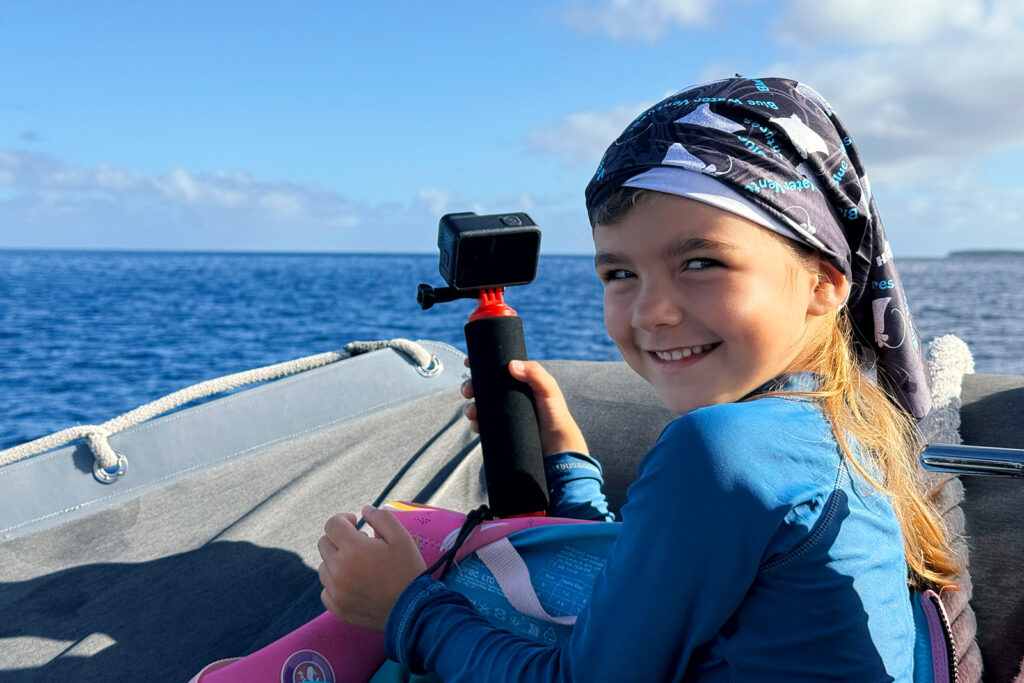 Und so konnten wir am Ende tatsächlich noch zwei weitere Ausflüge mit Maila mitnehmen. Maila wollte zwar nicht mehr ins Wasser, aber wir konnten sie trotzdem mit aufs Boot nehmen. Und das war vor allem heute einzigartig! Von allen unseren Ausflügen, die wir je gemacht haben – so viel kann ich jetzt schon verraten – war das heute mit weitem Abstand der eindrucksvollste vom Boot aus! Maila kam also voll auf ihre Kosten – und wir selbstverständlich auch!