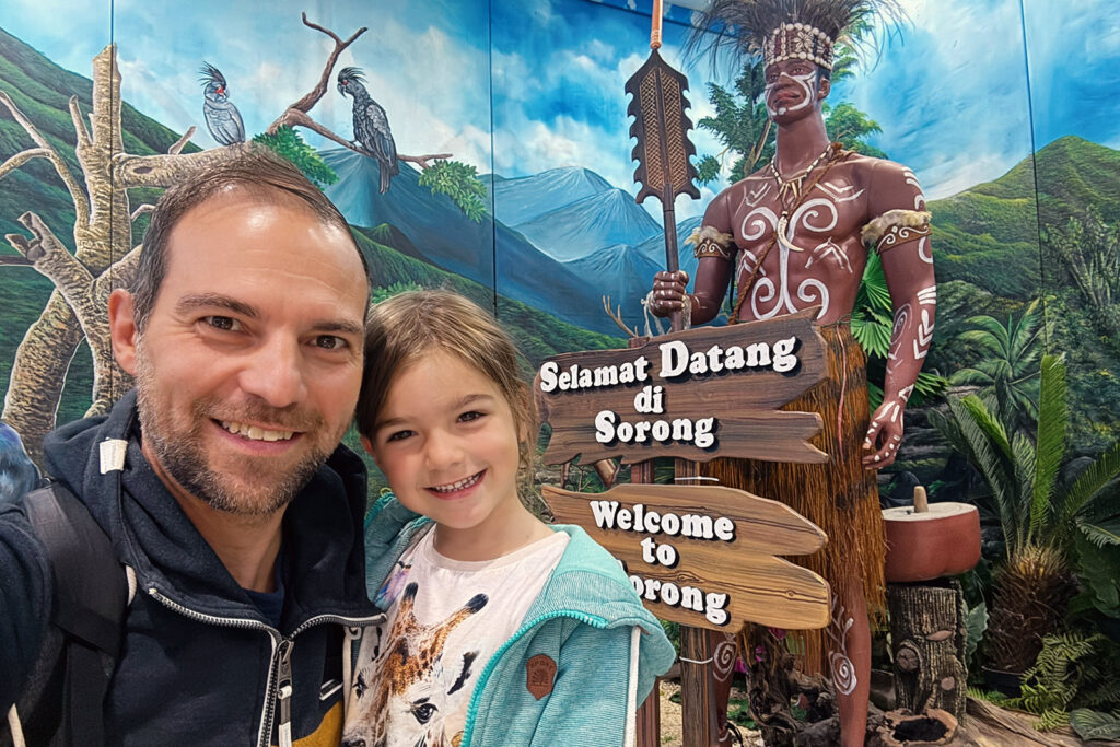 An alles Weitere kann ich mich nur noch schemenhaft erinnern. Miri hat uns irgendwann geweckt, wir sind im Halbschlaf ins Flugzeug getorkelt und eingeschlafen, noch bevor das Ding abgehoben ist. Tatsächlich habe ich gut schlafen können, und Maila mussten wir morgens nach der Landung sogar aufwecken. Wie es um die Laune meiner Frau stand, kann ich nicht mit Sicherheit beantworten, aber ich habe sie direkt zum Frühstück in das luxuriöseste Hotel in Sorong gebracht.