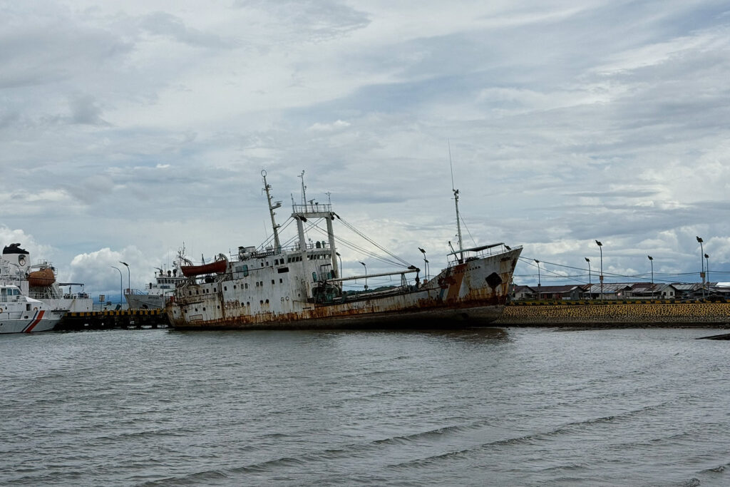 Nein, das war sie glücklicherweise nicht. Aber das war das erste Schiff, das man zu Gesicht bekam bei der Ankunft im Hafen. Die Fähre nach Waisai war auch nicht viel schöner, wie überall in Indonesien. Aber sie hat uns bei einsetzendem Regen heil ans Ziel gebracht. Wir haben die Ecomomy-Klasse gewählt, um 4,50 € zu sparen. Im Unterdeck etwas eingequetscht zwischen hauptsächlich Einheimischen, war die Überfahrt aber prinzipiell völlig okay.