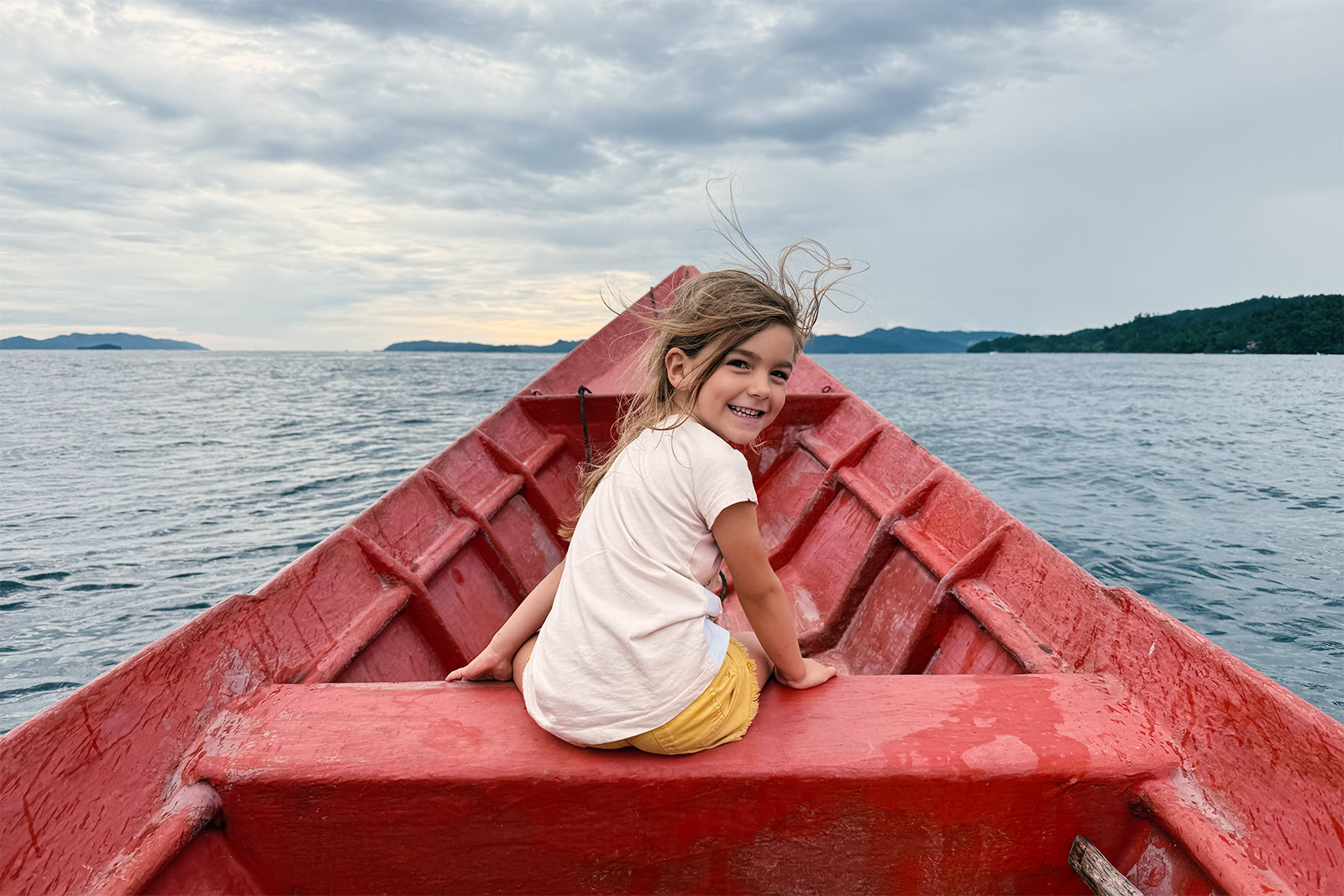 Dort konnte sie sich so richtig den Bauch vollschlagen. Da sie ja immer mal einen normalen Urlaub mit normalem Bett und normalem Hotel fordert – mit normalem Frühstück und normalen Leuten – haben wir direkt eine Nacht vor unserer Rückreise hier noch gebucht. Das Hotel ist wirklich ziemlich luxuriös, seltsamerweise kostet die Nacht trotzdem bloß 43 €. Maila ist nach dem Frühstück noch in den Pool gehüpft, und wir haben hier ein paar internationale Familien kennengelernt. Die eine kam gerade zurück und war hellauf begeistert, die andere kam gestern an und freut sich jetzt auch auf das Abenteuer Raja Ampat. Und jetzt kommt’s: Die Tochter heißt – wie soll es anders sein? – Lilly! Das dürfte dann jetzt die siebte Lilly sein. Nach einem kleinen Plausch und dem Austausch von Erfahrungen und Tipps freuen wir uns sehr auf die kommenden Tage. Die Familie hat Delfine beim Schnorcheln getroffen und war auch sonst von den Inseln und der Unterwasserwelt sehr begeistert. Jetzt haben wir noch einen Kontakt für ein Speedboot, um unsere etwas längere Überfahrt zu den weiter draußen auf dem offenen Meer liegenden Fam-Inseln sicherer und schneller zu machen.