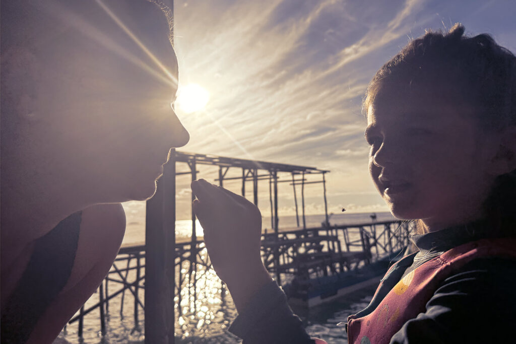 Spontan haben wir für heute bei Tarzan Diving einen Tauchkurs gebucht. Um sieben in der Früh wurden wir abgeholt. Der eigentliche Plan war, dass Maila ne Stunde Tablet schauen darf und wir unseren ersten Tauchgang haben. Leider hat sich dann vor Ort herausgestellt, dass Maila ganz alleine wäre und das wollte weder sie noch wir. Also haben wir uns aufgeteilt und nacheinander die Tauchgänge gemacht. Da Miri ja schon Vorerfahrung hat, machte sie einen Refresher und könnte mir 2 weiteren Tauchgängen morgen ihren Open Water fertig machen. Ich wiederum bin ja Neuling und leider reicht die Zeit diese Woche nicht, um ebenfalls im fertig zu werden. Aber heut kann ich mal schauen, ob es mir gefällt. Und sollte es mir gut gefallen, dann hätten wir Ende nächster Woche nochmal 2 Tage Puffer.